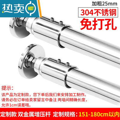 敬平免打孔304不锈钢浴帘杆浴帘套装衣柜直杆型窗帘杆晾衣杆 承重 升级 [双金属增压] 加粗25mm 直杆18