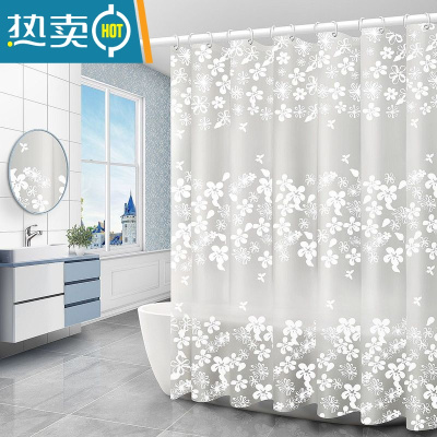 敬平浴帘隔断帘浴帘布浴帘杆套装洗澡门帘窗帘卫生间防水免打孔