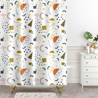 北欧ins风浴帘套装免打孔伸缩杆浴室防水布卫生间隔断帘卧室帘