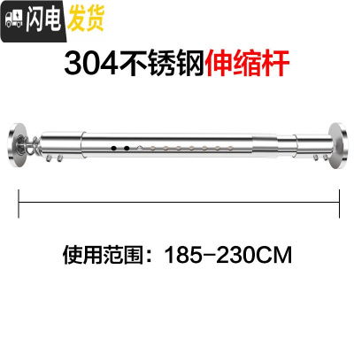 三维工匠浴室304不锈钢直杆免打孔晾衣杆撑杆窗帘杆挂衣杆衣架浴帘杆套装 弹簧304伸缩杆185-230cm