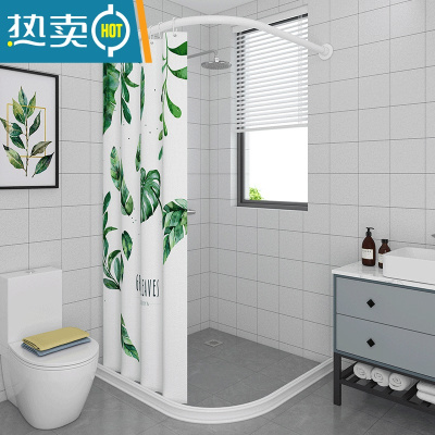 敬平浴室浴帘套装免打孔钻石型弧形U型浴帘杆卫生间防水磁吸隔断帘子