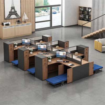 域赢屏风财务桌办公桌简约现代卡座员工位干字形四人桌[含柜]