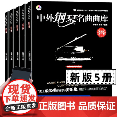 新版 中外钢琴名曲曲库 全5册精粹版 1至5册全套 中外世界经典 钢琴名曲集大全 全国钢琴业余考级用书简单入门初中高级五