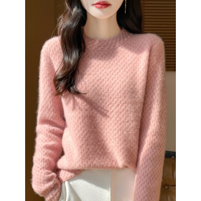 秋冬新款安迪绒针织开衫女士圆领镂空提花毛衣长袖套头针织衫