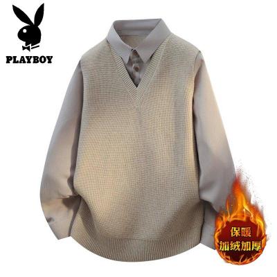 YANXU男士开衫假针织衫新款衬衫领毛衣修身商务外套套