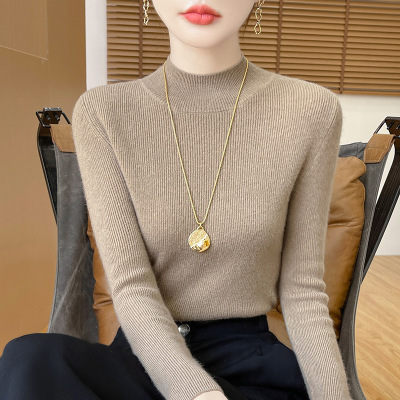 秋冬新款套头针织毛衣女安迪绒半高领打底衫女修身厂