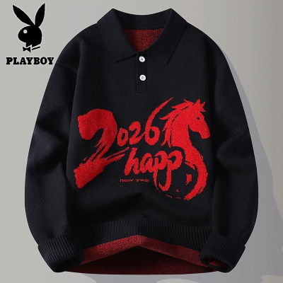 花花公子新款高品质[新款] 2025年秋冬款翻领针织毛衣男