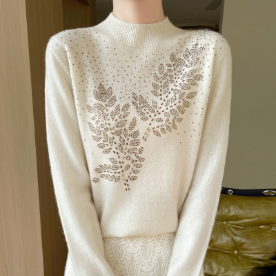 秋冬新款安迪绒宽松半高领针织衫内搭树枝烫钻设计感女士毛衣