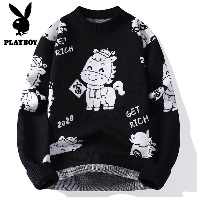 花花公子新款高品质[新款]2025年秋冬款圆领针织毛衣男