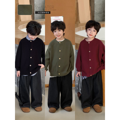 童酷男童秋季新款洋气纯色宝宝针织开衫百搭圆领宽松儿童毛衣