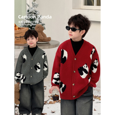 童酷儿童冬装湖州织里童装韩版加厚针织开衫熊猫提花男童毛衣