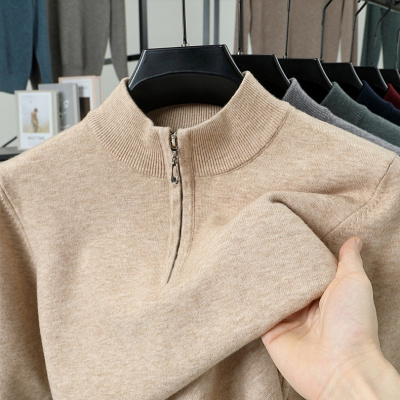 秋冬新款半高领拉链毛衣男加厚长袖中年休闲套头男士针织衫