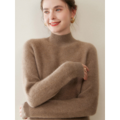 半高领花精纺6毛针织打底衫女宽松长袖套头内搭女士新款薄毛衣