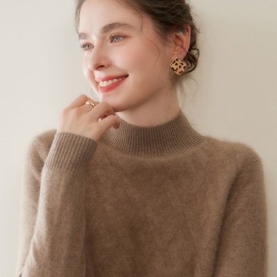 新款半高领加厚羊绒衫女士秋冬款提花内搭显瘦毛衣纯色针织衫上衣