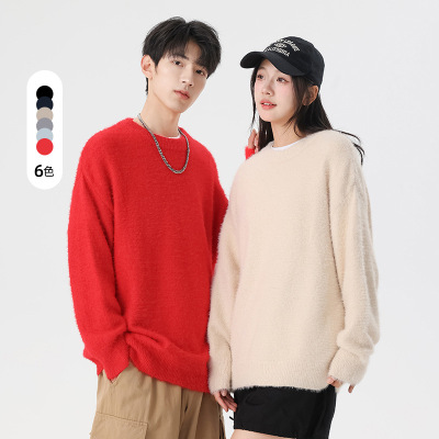 情侣装纯色针织衫毛衣圆领套头秋冬新款内搭外穿宽松慵懒男女毛衣