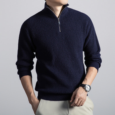 欧美男士羊毛衫秋冬新款加厚半高拉链领保暖打底针织毛衣男