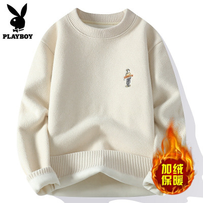 花花公子加绒毛衣男款冬季2024年新款潮流圆领保暖打底针织衫男士