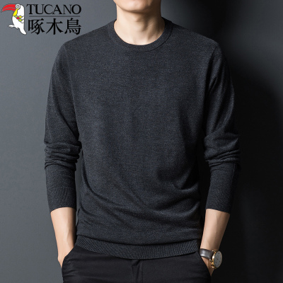 啄木鸟春秋新款桑蚕丝纯色针织羊毛打底衫衣服薄款真丝长袖毛衣男