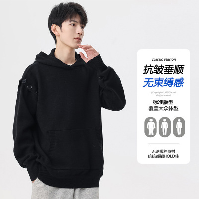 男装可拆卸扣子连帽春秋季毛衣男女款美式潮牌复古慵懒休闲针织衫