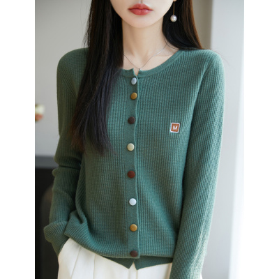 2025年新款 安迪绒彩扣M标圆领开衫女百搭毛衣针织外套上衣女