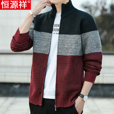 恒源祥春秋季卫衣男装立领拉链韩版潮流新款开衫毛衣男士针织外套