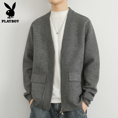 花花公子开衫毛衣男士针织衫2025年春季韩版潮流休闲灰色外套男款