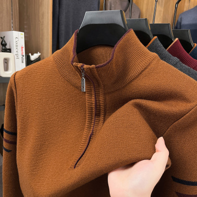 加厚半拉链立领毛衣男冬季新款中年休闲撞色保暖打底男士针织衫