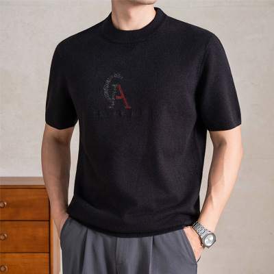 350g短袖精仿羊毛衫男秋冬新款时尚休闲半高领针织毛衣男