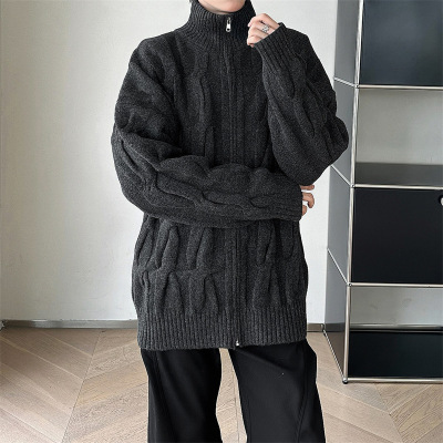 YANXU中长款针织外套男休闲潮流外搭开衫男士韩版毛衣夹克外穿上衣