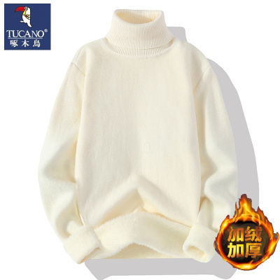 啄木鸟冬季男士高领毛衣潮流宽松加厚保暖打底线衣服纯色针织衫男