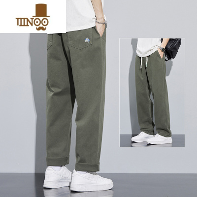 YANXU休闲裤男士夏季薄款宽松直筒美式潮牌阔腿裤工装百搭九分长裤