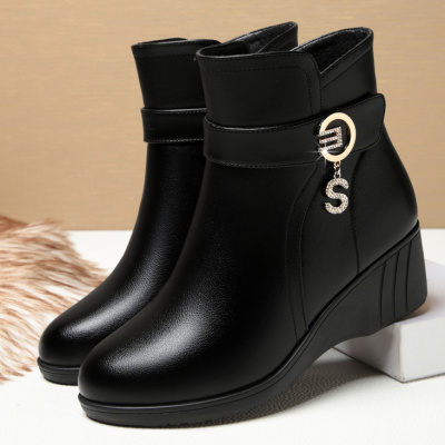 妈妈鞋棉鞋女秋冬新款坡跟厚底女短靴子加绒保暖中老年女靴子