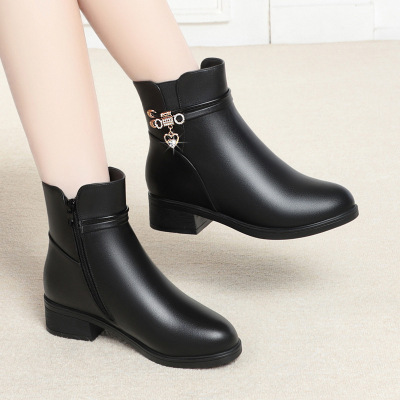 妈妈鞋棉鞋女加绒软底短靴中跟皮鞋保暖防滑中老年女靴子