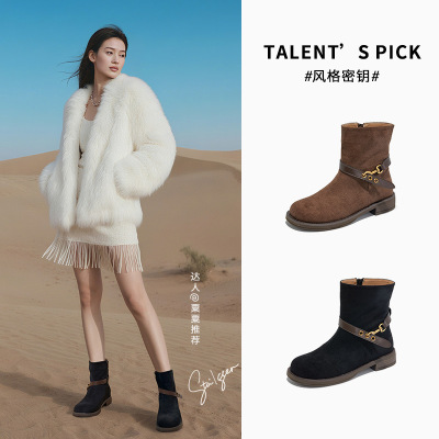 复古美拉德西部牛仔靴秋冬新款机车短靴女休闲百搭马丁靴子女