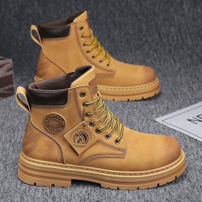 男士秋季上新款纯色简约马丁靴皮革透气休闲时尚通勤假系带蹬靴子