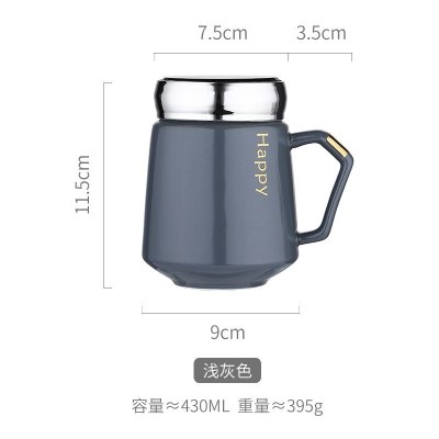 家柏饰(CORATED)创意个性潮流陶瓷马克杯男办公室带盖勺家用风简约女喝水杯子 浅灰色
