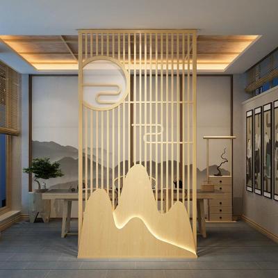 新中式实木屏风隔断玄关客厅分隔座屏入户遮挡镂空纱屏灯带小户型 屏风底部升级LED灯带 整装
