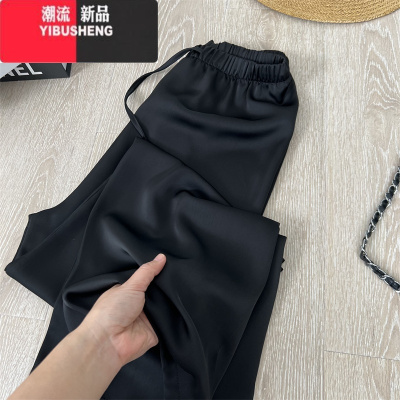 YIBUSHENG高级感小众慵懒风缎面休闲裤女高腰垂感春季宽松阔腿裤拖地长裤子