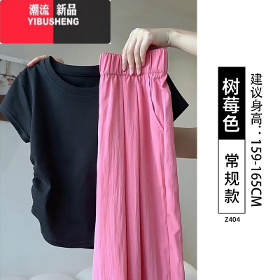 YIBUSHENG树莓粉山本裤女2024新款季小个子垂感凉凉休闲慵懒冰丝阔腿裤子