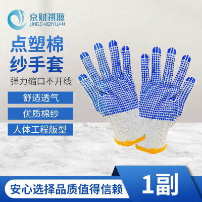 京财祺源 点胶劳保手套 工地搬运维修车间工作 防滑耐磨棉纱手套 1副 JCY-A995S-ST03