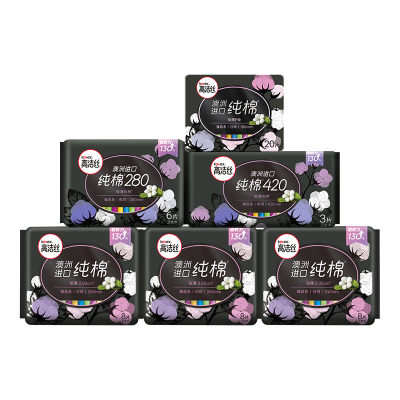 高洁丝卫生巾臻选澳洲进口纯棉姨妈巾日夜用组合装53片