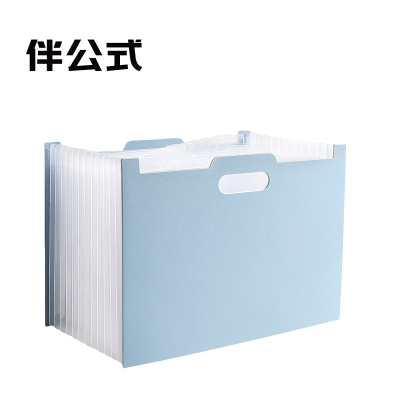 伴公式B1235横款A4风琴包多层13格手提资料册浅蓝