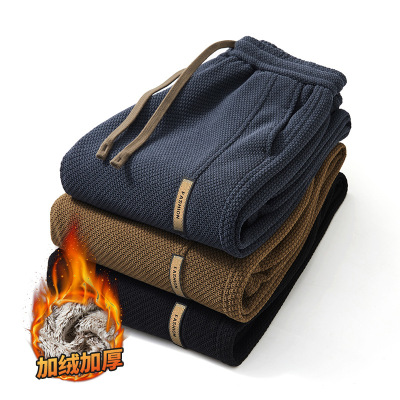 秋冬休闲裤子男士束脚裤男裤子宽松松紧百搭男士针织保暖加绒裤男