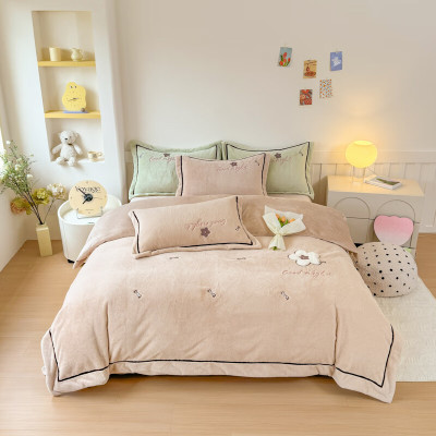 彼加曼 BGM-T2542兔毛绒贴布绣保暖工艺四件套-奶咖(被套200*230cm)