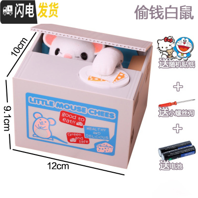 三维工匠储蓄罐儿童存钱罐创意可爱电动储钱罐小猫咪抖音箱网红 白老鼠+螺丝刀电池贴纸(不刻字)