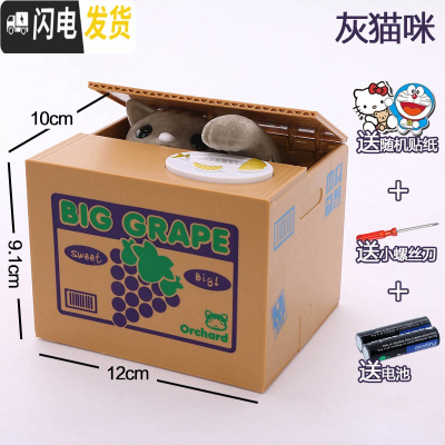 三维工匠储蓄罐儿童存钱罐创意可爱电动储钱罐小猫咪抖音箱网红 灰猫咪+螺丝刀电池贴纸(不刻字)