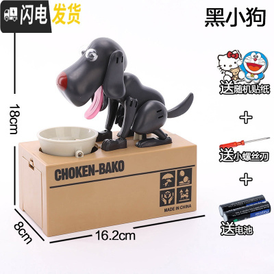 三维工匠储蓄罐儿童存钱罐创意可爱电动储钱罐小猫咪抖音箱网红 全黑狗+螺丝刀电池贴纸(不刻字)