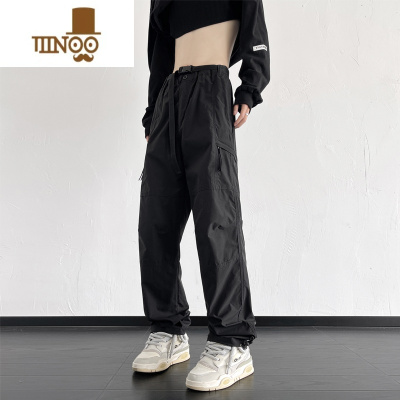 YANXU裤子男生款休闲长裤直筒阔腿裤冲锋裤美式运动卫裤潮牌伞兵裤