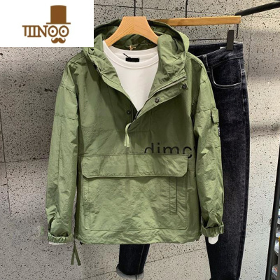 YANXU新款秋季日系简约休闲连帽外套冲锋衣潮流百搭帅气青年夹克上衣男
