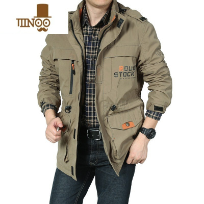 YANXU潮牌夹克男户外防风衣多口袋工装外套中长款冲锋衣大码男装